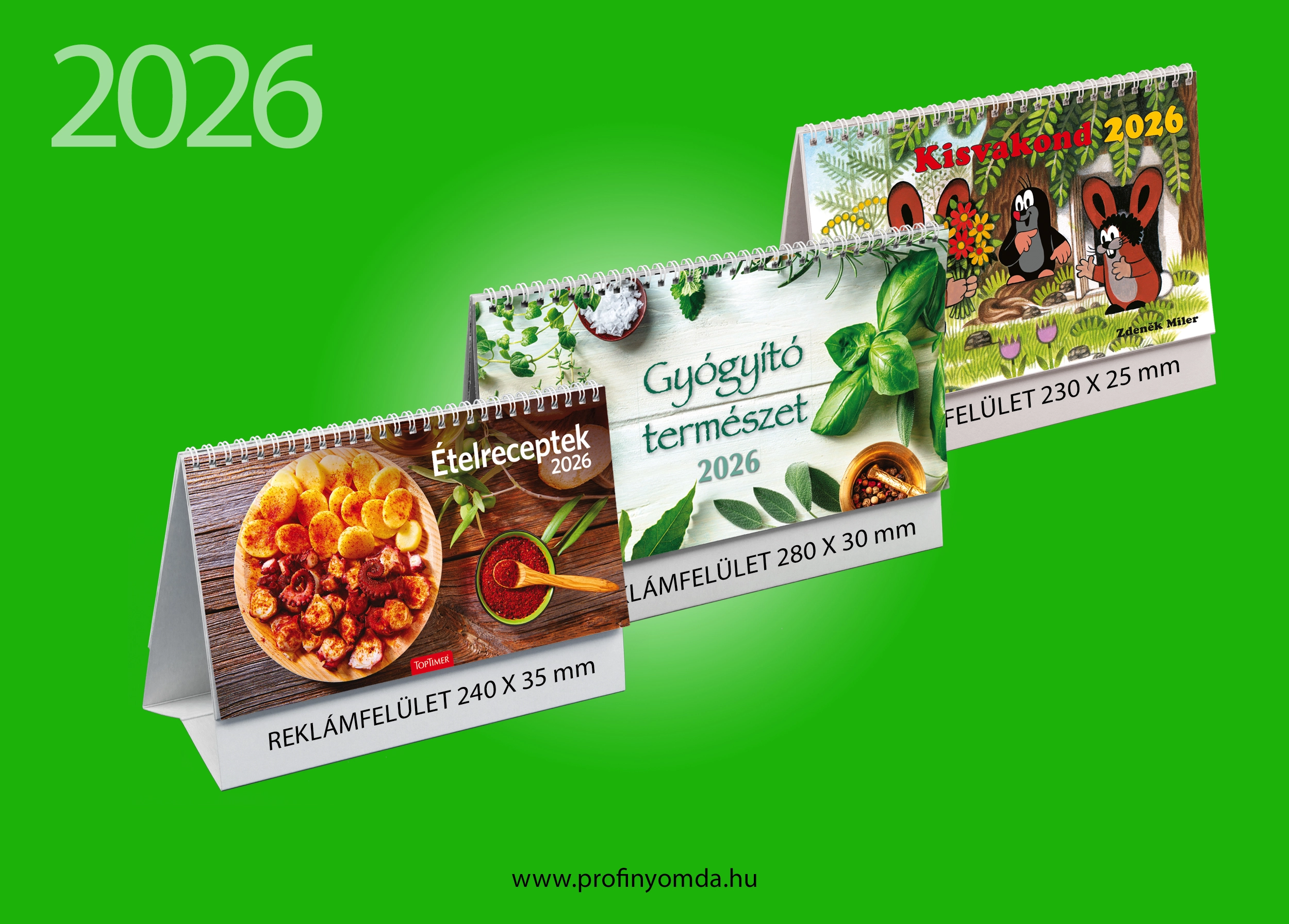 Asztali naptár és képes asztali naptár álló és fekvő kivitelben.