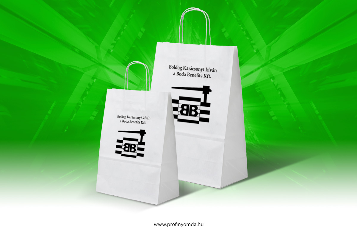 Budapesti nyomdánk feliratozott, logózott sodrottfüles papírtáskák nyomtatását vállalja rövid határidővel, személyes átvétellel vagy országos lefedettségű kiszállítással. Termékeink 15 féle méretben elérhetők, fehér és barna (natúr) színben, egyes típusok ezen felül 9 nyomtatott alap színben is elérhető. A papírtáskákat egyszín- vagy többszín nyomással, egységes arculat szerint készítjük. A sodrottfüles papírtáska egy tökéletes megoldás nagy szín és méretválaszték, jó teherbírás jellemzi. Megbízható minőséget és pontos teljesítést biztosítunk a teljes gyártási folyamat során. Minimum rendelési mennyiség 100 db.
